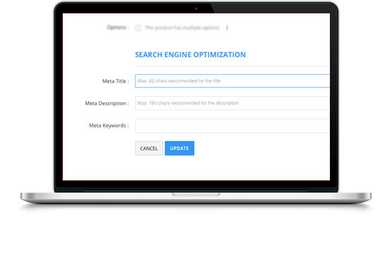 Shopio, ihtiyacınız olan tüm SEO özellikleri ve araçlarını sunmaktadır. Arama motorlarında üst sıralarda çıkmanız için yapmanız gereken ürün ve kategorileriniz için ayrı ayrı SEO uyumlu metinler girmektir.